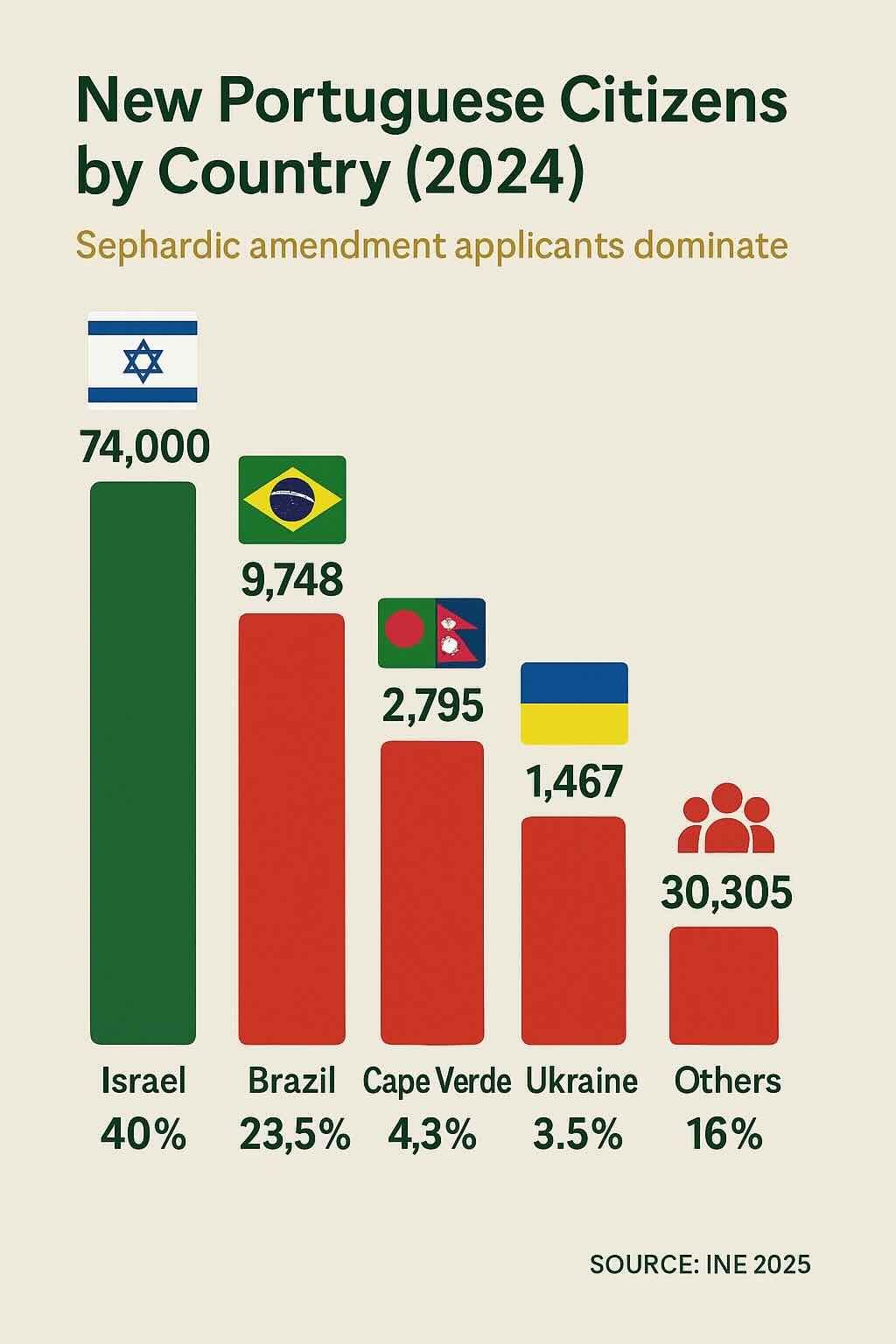 Israeli applicants account for 40% of Portugal’s 74,000 new citizens since 2019, driven by the 2015 “Sephardic Law.” Despite political backlash and tightened rules in April 2024, most passport-holders remain abroad, fueling tech and business ties rather than immigration.